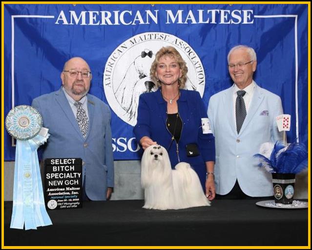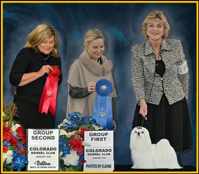Lux is a gorgeous female with straight white silky coat, great pigment, excellent structure, huge eyes, and attitude. She won Select at the Royal Canine show at only 13 months old. Below is Lux winning a Group 1 & Group 2 & Winning Select Bitch at the AMA Nationals 2025. Watch for her in the ring in 2025. Dam is - CH Avante’s Love To Watch Her Strut Sire is - BISS GCHB CH Beauty Shantal Design Hot Exclusive